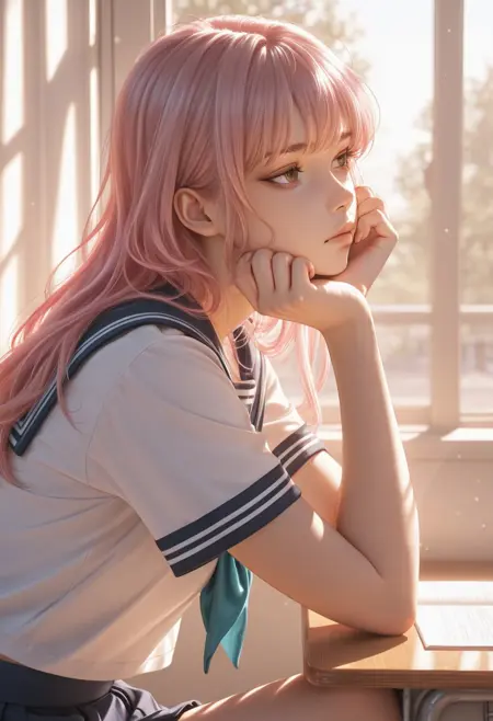 1girl, pink hair, long hair, silver circlet, corset, white dress, short dress,