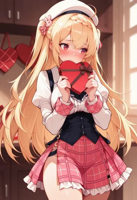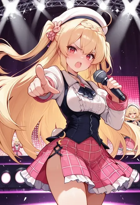 two side up,white headwear,rabbit hair ornament,frilled skirt,side slit,plaid skirt,plaid bow,