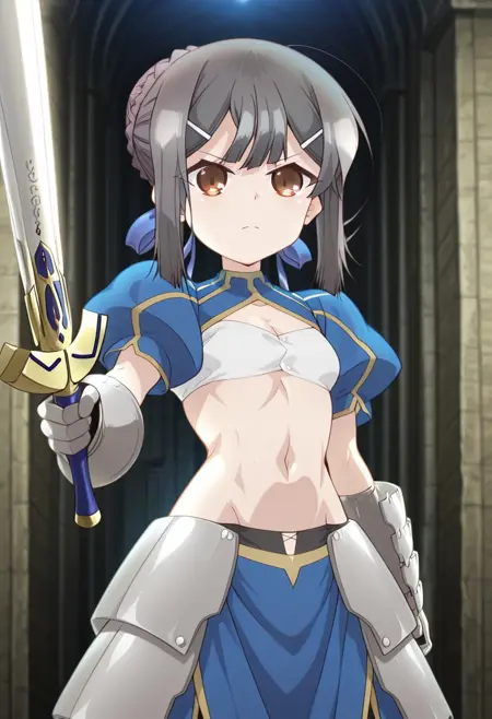 | 학습된 단어 | 1girl, cosplay, navel, solo, breasts, hair ornament, small breasts, hairclip, gauntlets, smile, looking at viewer, blue ribbon, puffy sleeves, hair ribbon, armor, ribbon, abs, midriff, bangs, sidelocks복사됨! 1girl, gauntlets, cosplay, weapon, sword, navel, solo, excalibur (fate/stay night), holding sword, blue ribbon, looking at viewer, small breasts, holding weapon, puffy sleeves, holding, hairclip, hair ornament, bangs, armor, hair ribbon, breasts, hair bun, ribbon, faulds, braid, sidelocks, blue skirt, midriff, short sleeves복사됨! |