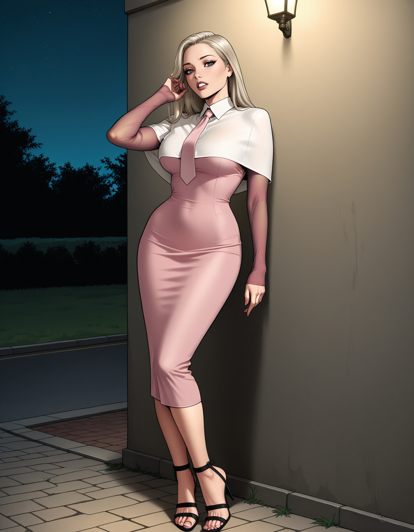 Nice classy number with a capelet and tie. Trained with an alternate set without the capelet, but that one is pretty basic.