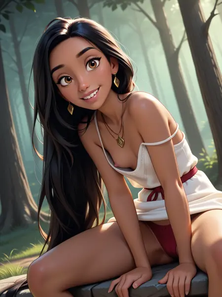 森林中女孩的概念,双腿分开,短裙下露出隐私,一只乳房顽皮地挣脱束缚,引诱任何感兴趣的人……