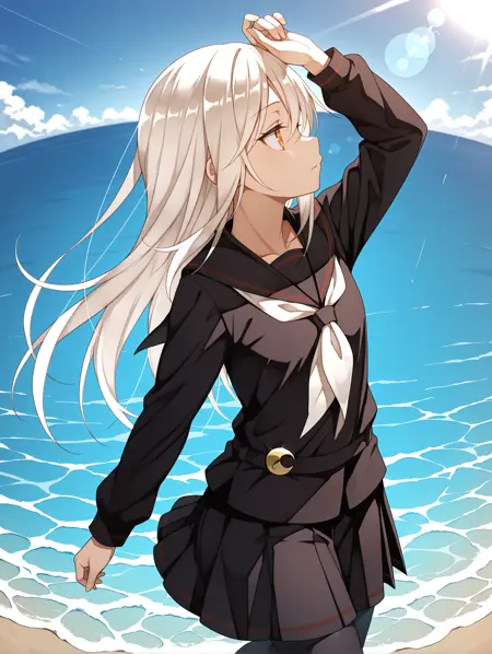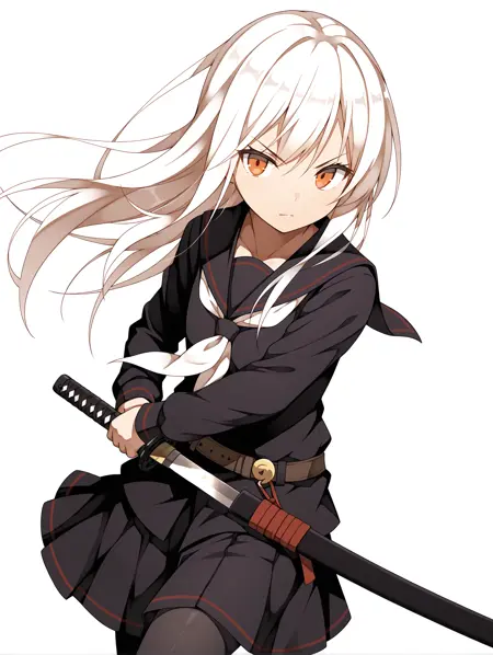 触发词:・d_d_kikuzuki,orange eyes,white hair,long hair,