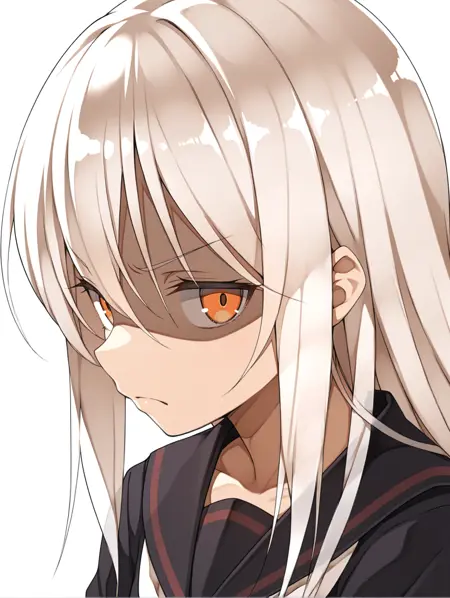 トリガーワード ・d_d_kikuzuki,orange eyes,white hair,long hair,