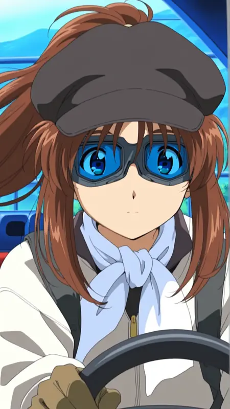 Sena_goggles\(taiho shichauzo\),棕色头发,长发,马尾,帽子,围巾,夹克,手套,