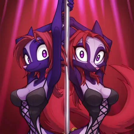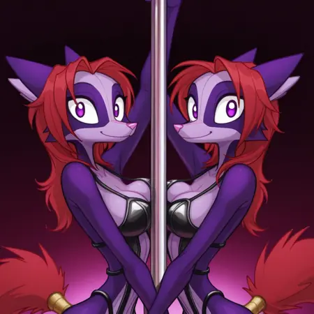 marallang_dk, 1girl/2girls, / 複数の女の子, solo/duo, ファリー, ファリー女性, 動物の鼻, 動物の耳, 尾, 鼻先, 紫色の目, 胸, 長い髪, 体毛, 色付きの肌,