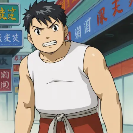 提示:男性,丰满,黑发,黑眼睛,背心,灰色腰带,红色裤子,黑色拖鞋,室内(厨房),室内(公寓/边桌/台灯/台灯放在边桌上/画(物体)/窗户/窗帘),户外(城市/天空/商店/建筑/栏杆/路灯/标志),户外(峡谷),户外(公园/小径/路灯/灌木/花朵/水)