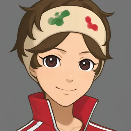For her male appearance, substitute parted bangs for thick eyebrows and add exercise brace