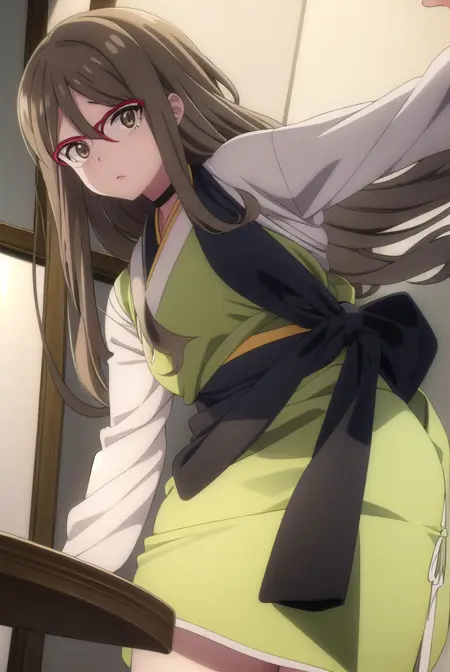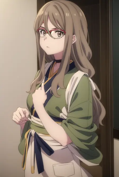 日本服饰,项圈,和服,围裙,黑色项圈,腰围裙,绿色和服,