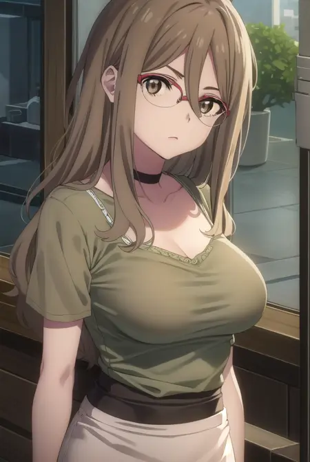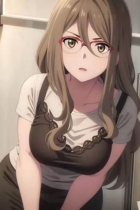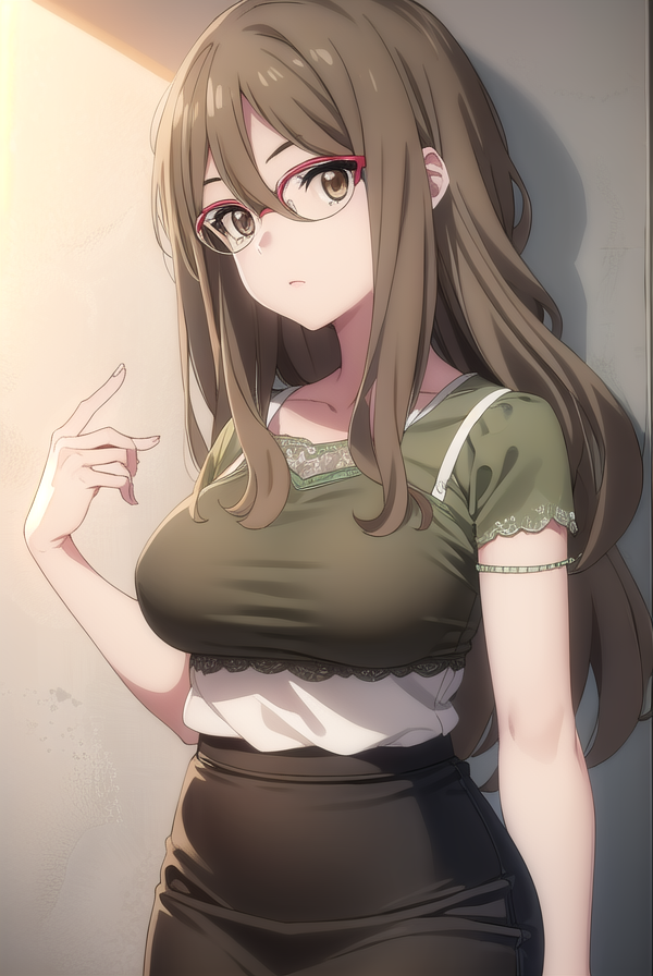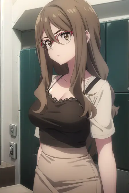 中原水希,长发,棕色头发,(棕色眼睛:1.5),眼镜,红色框架眼镜,
