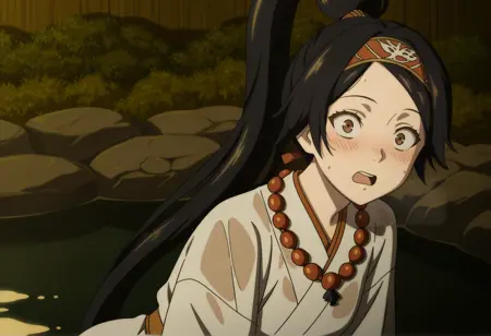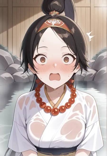주요 태그: 매우 긴 머리, 검은 머리, 갈색 눈, 높은 팔찌머리, 머리띠, 이마, 갈라진 앞머리, 일본 전통 복장, 후드, 일본 갑옷, 하카마, 장갑, 손가락 없는 장갑,