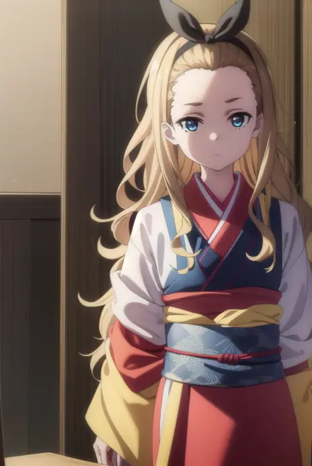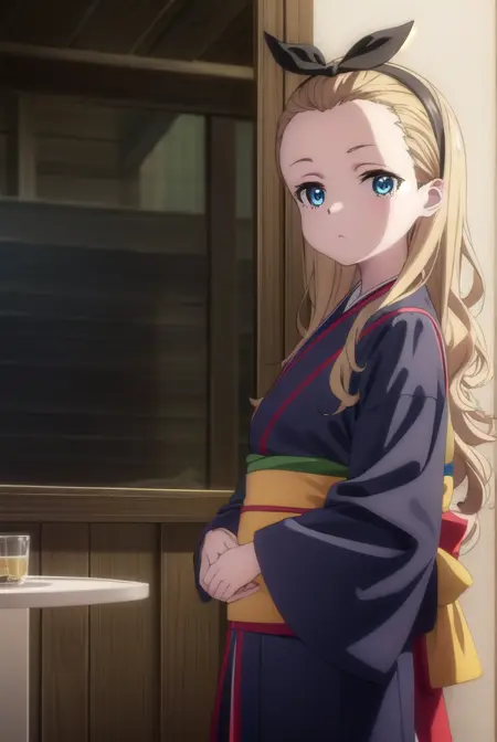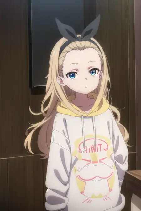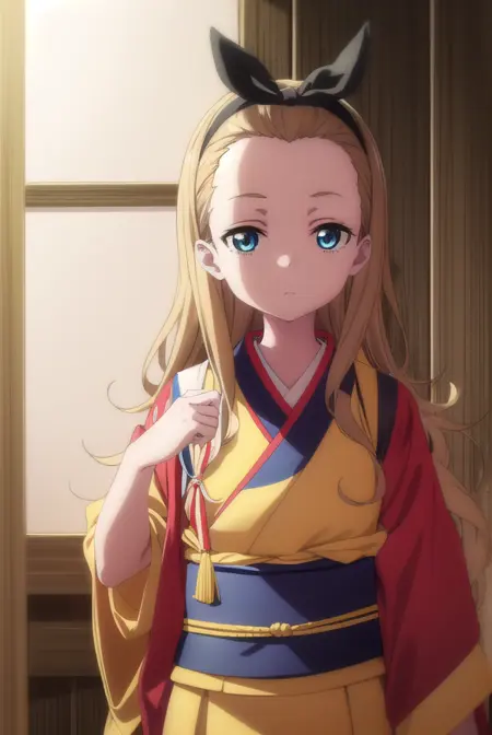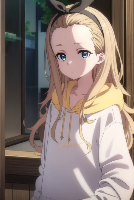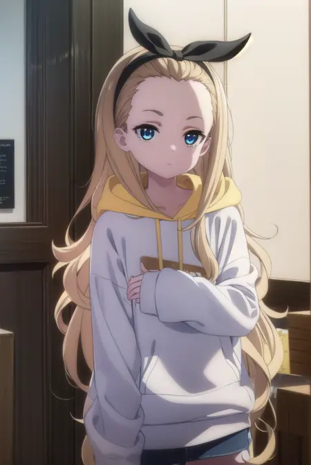 核桃栗子,长发,蓝眼睛,金发,丝带,发带,黑色丝带,黑色发带,额头,
