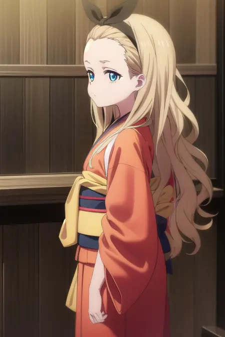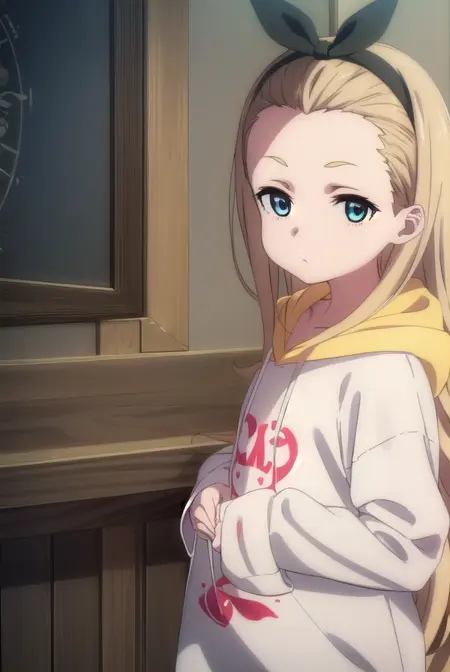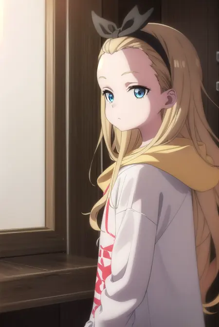 호두 쿠루미, 긴 머리, 파란 눈, 금발, 리본, 머리 리본, 머리띠, 검은 리본, 검은 머리띠, 이마,