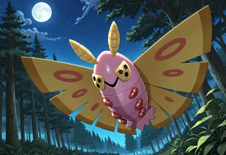 シャイニータグ: Shiny_dustox、ピンクの体、黄色い翼