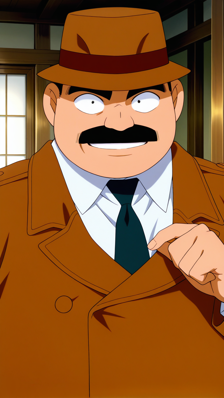 これは日本の漫画・アニメ『名探偵コナン』に登場する目暮十三です。