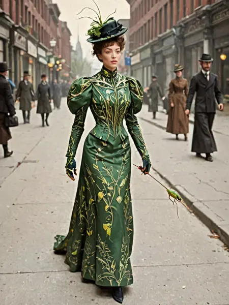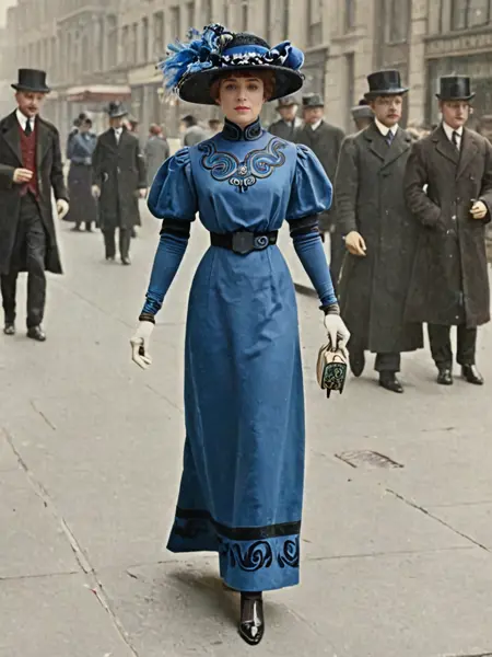 整个图像集作为一个LoRA进行训练,并为每个年代和时期设置了触发词。触发词:1880_dr3ss、1890_dr3ss、1900_dr3ss、1905_dr3ss、1910_dr3ss、Fortuny。将这一过渡时期女性时尚的完整历史尽在掌握。这是一个极其灵活的LoRA。您可以通过类似“1890_dr3ss 带瓢虫图案”的提示来创建全新的原创设计,超级有趣!