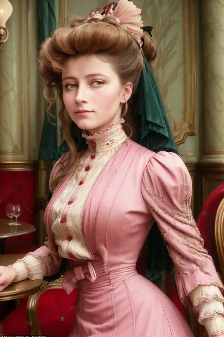 I am doing a whole series of dresses and gown of the Belle Epoque period from approx. 1880 to 1914. This is the first one, which was trained on dresses and photographs from 1905-1909. The model is very flexible and creates all kinds of dresses with very little prompting. Full strength works pretty well.