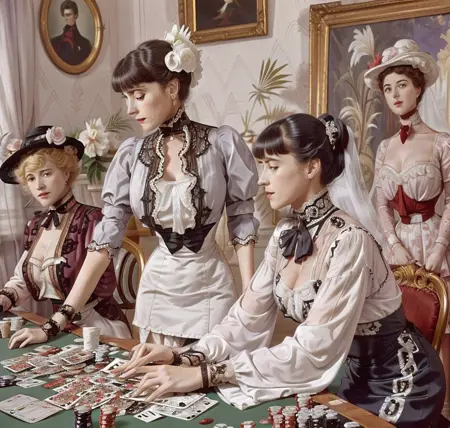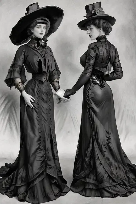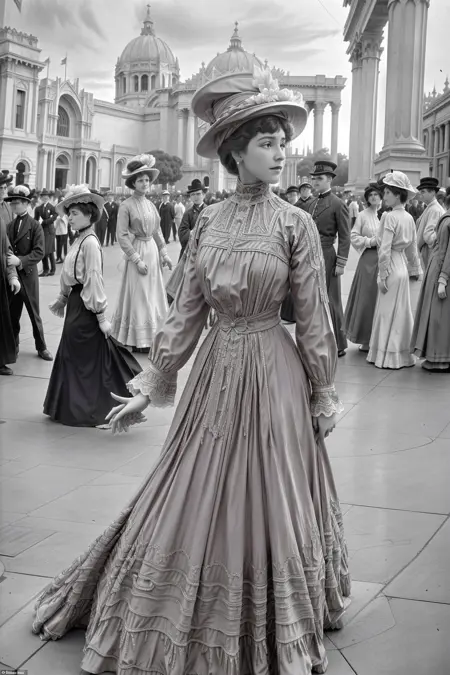The whole image set trained as one LORA with trigger words for each decade and era. Triggers: 1880_dr3ss, 1890_dr3ss, 1900_dr3ss, 1905_dr3ss, 1910_dr3ss, Fortuny. Have the whole history of women's fashion during this Transistional era at your fingertips. This is an amazingly flexible LORA. You can create new original designs by prompting with something along the lines of "1890_dr3ss with a ladybug design". Super fun!