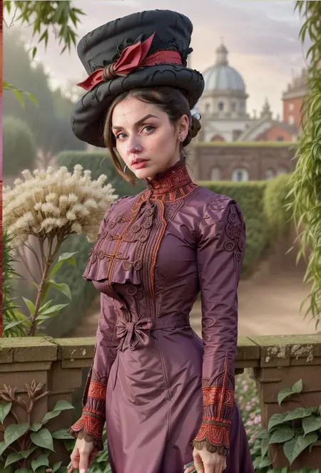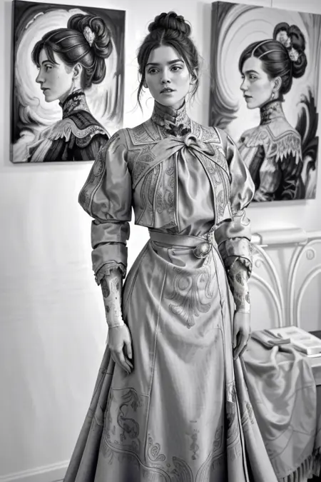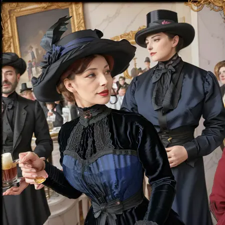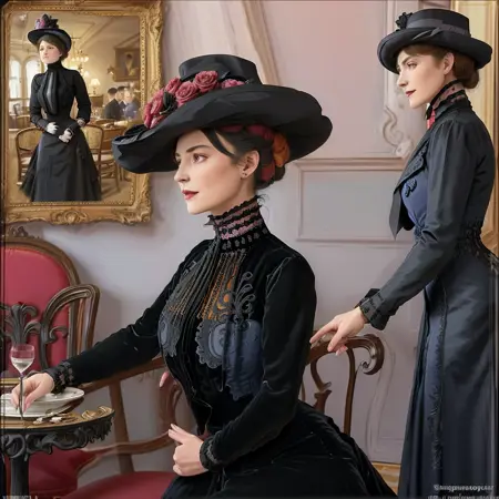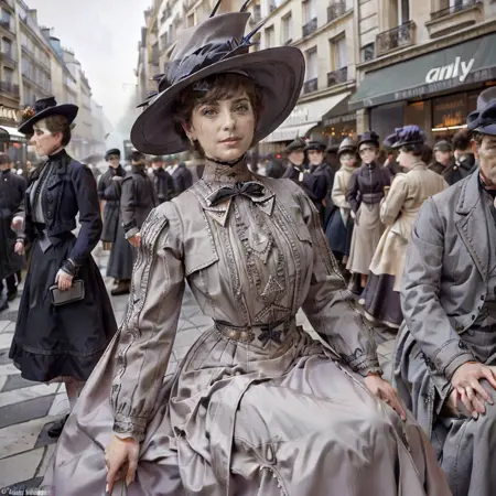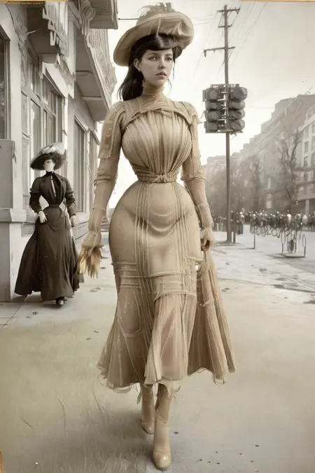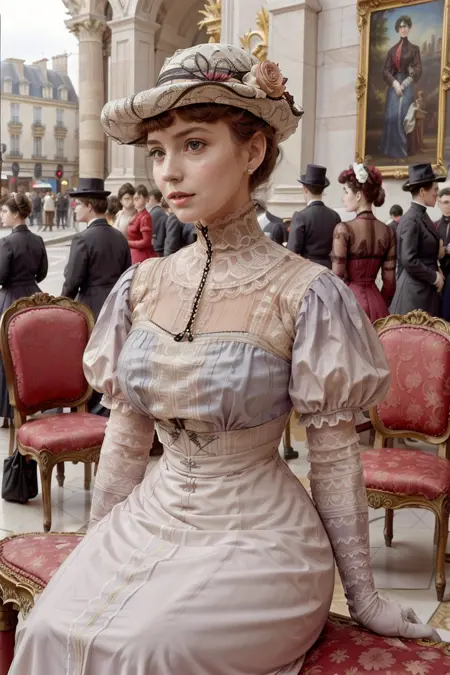 I am doing a whole series of dresses and gown of the Belle Epoque period from approx. 1880 to 1914. This is the first one, which was trained on dresses and photographs from 1905-1909. The model is very flexible and creates all kinds of dresses with very little prompting. Full strength works pretty well.