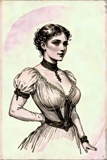 整个图像集作为一个LoRA进行训练,并为每个年代和时期设置了触发词。触发词:1880_dr3ss、1890_dr3ss、1900_dr3ss、1905_dr3ss、1910_dr3ss、Fortuny。将这一过渡时期女性时尚的完整历史尽在掌握。这是一个极其灵活的LoRA。您可以通过类似“1890_dr3ss 带瓢虫图案”的提示来创建全新的原创设计,超级有趣!