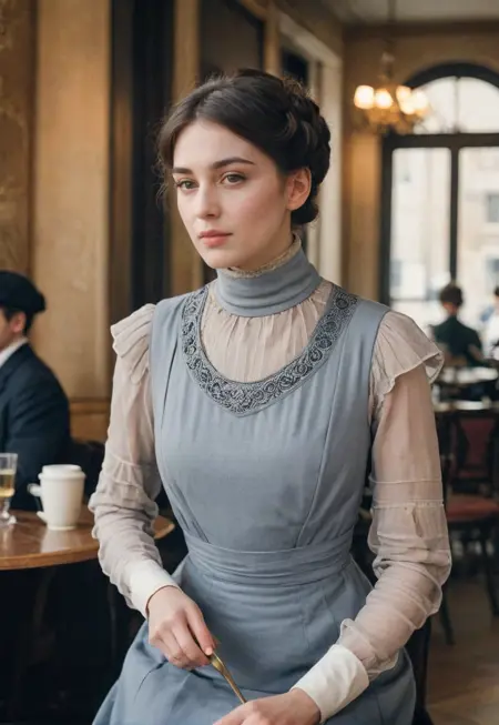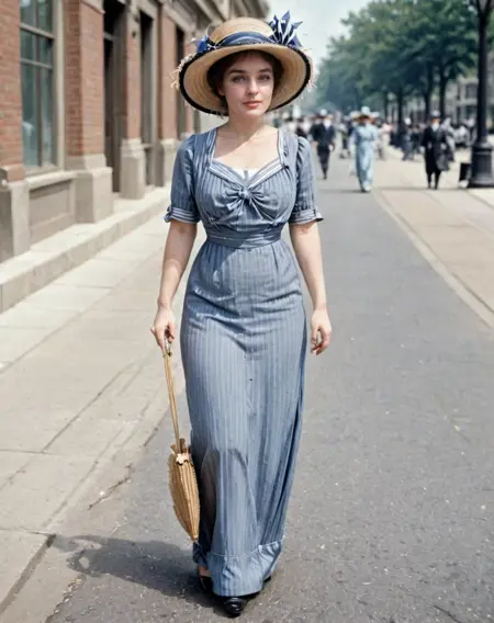 我正在制作一系列贝尔·埃波克时期(约1880年至1914年)的连衣裙和礼服。这是第一个版本,训练数据来自1905年至1909年的裙子和照片。该模型非常灵活,只需极少的提示即可生成各种类型的裙子,全强度效果非常好。
