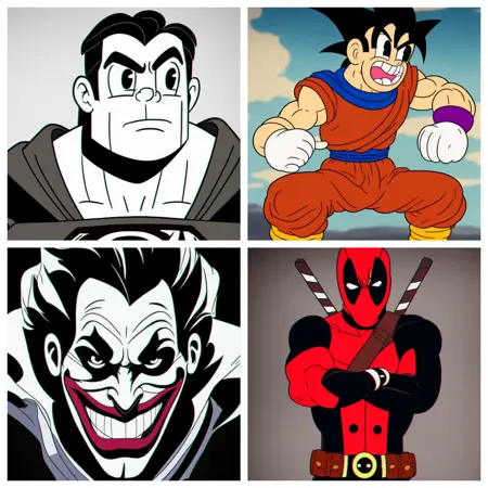 SD 1.5에서 훈련된 모델로, Midjourney로 생성된 사진을 기반으로 훈련하여 1920~1930년대 스타일의 만화를 생성할 수 있음