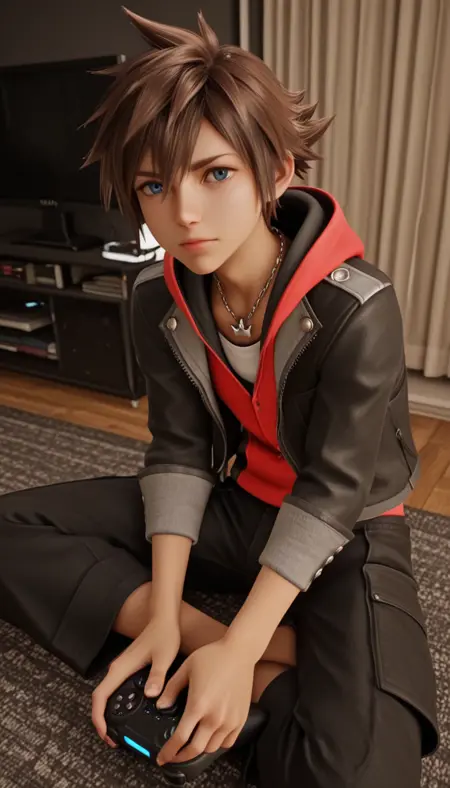 来自视频游戏系列《王国之心》的索拉,模型基于4K预告片的截图训练。