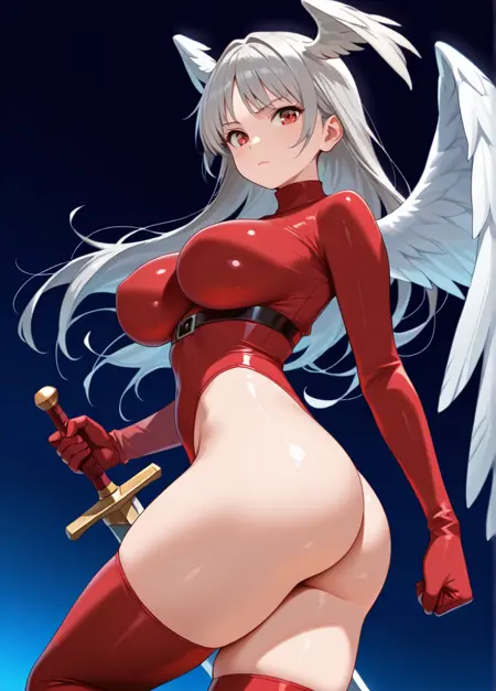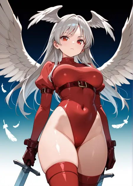 leotard, breasts, red leotard, large breasts, thighs, gloves