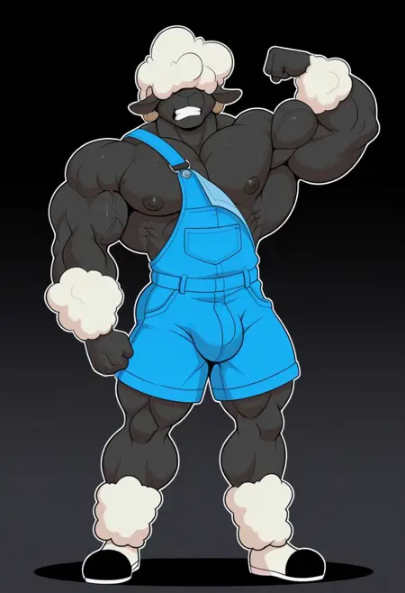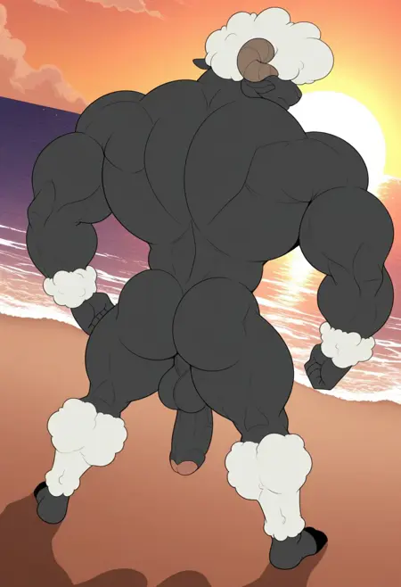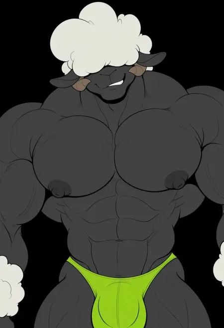 Reinforcement Prompts: "furry, curled horns, covered eyes, muscular, manly, mature male, large pectorals, alternate pectoral size"