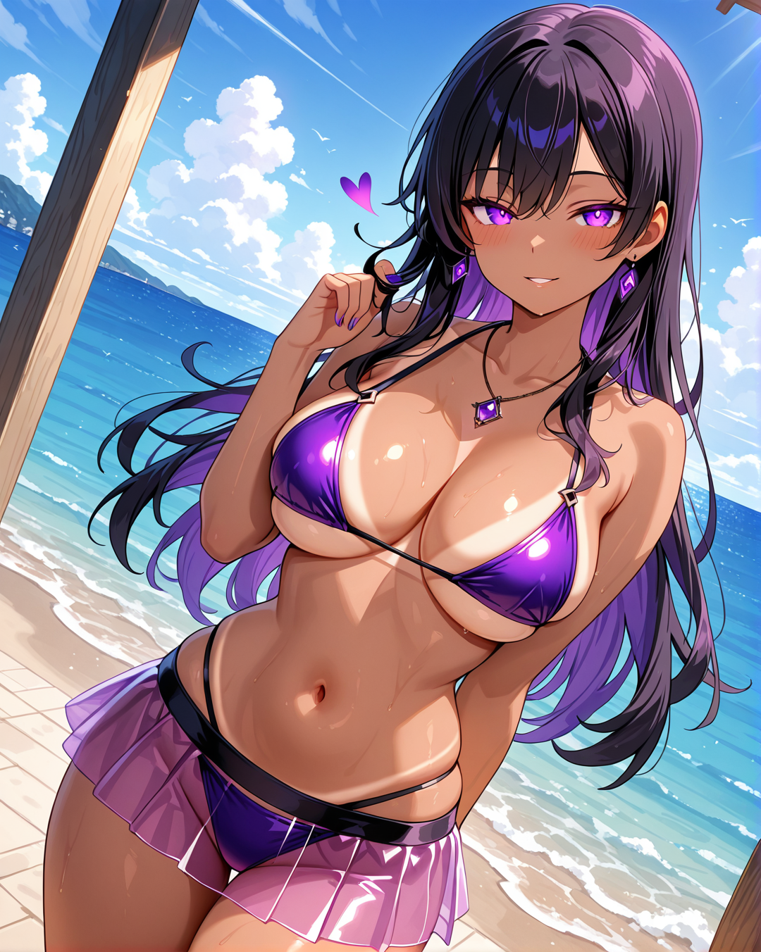 This model captures her enigmatic presence, perfect anatomy, seductive expressions, and stylish elegance, whether in action, posing with charm, or sharing an intimate smirk.