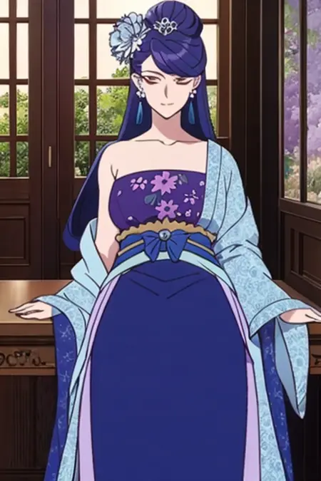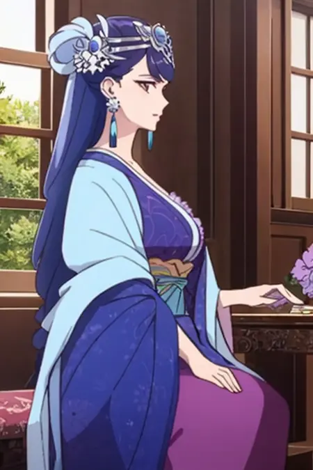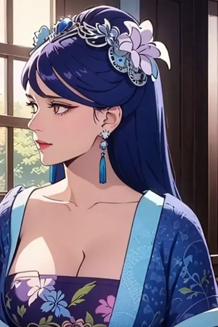 long hair, blue hair, hair ornament, hair bun, Earrings,Earrings