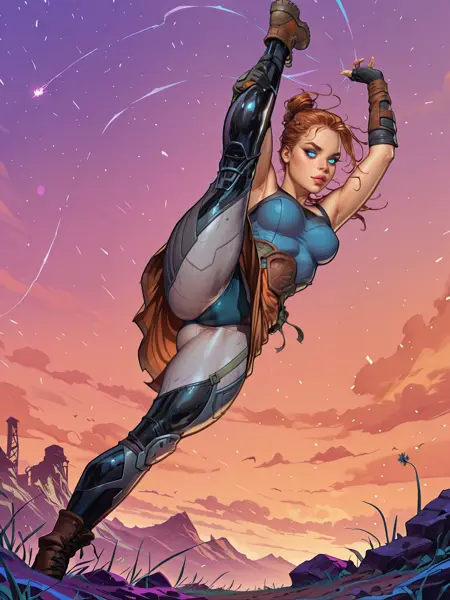 Dropshot 将漫画和动漫的美学融合成一种具有粗犷线条和富有表现力细节的统一混合风格。