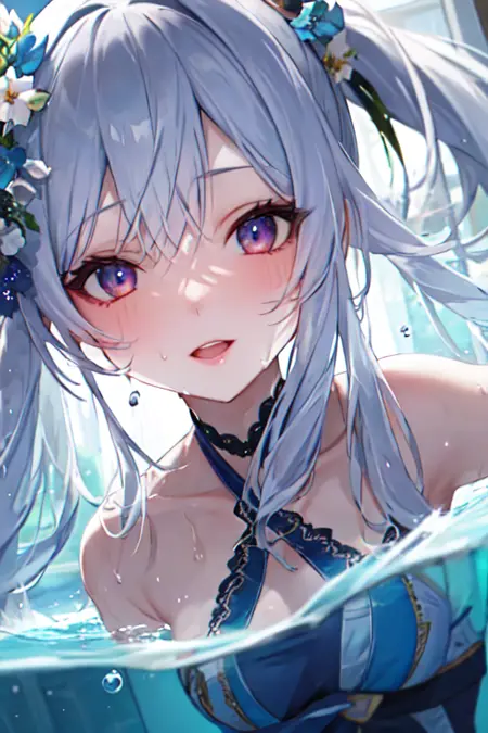 추천 프롬프트: 완전한 해부학, 깊은 침수, 물에 잠긴 상태, 부분 침수, 거품, 반짝이는 피부, 땀, 흐린 하늘