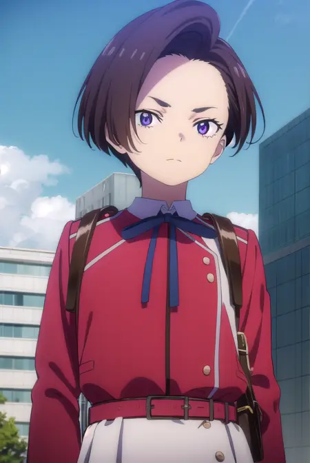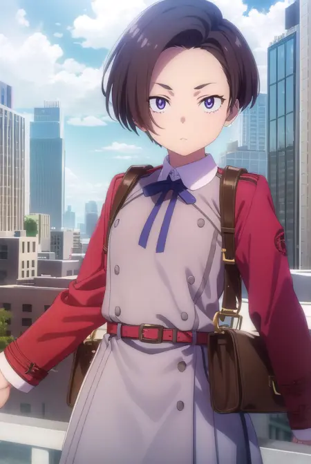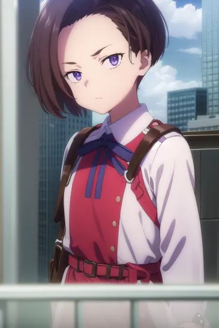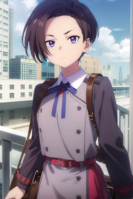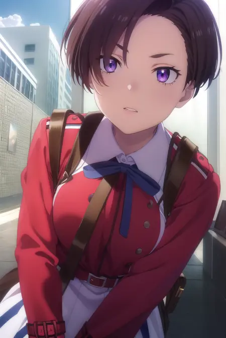 fuki harukawa、短い髪、額、茶色の髪、(紫の目:1.1)、