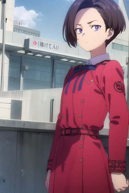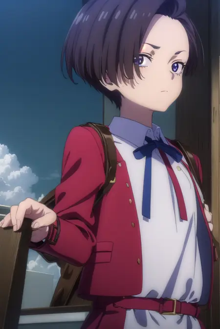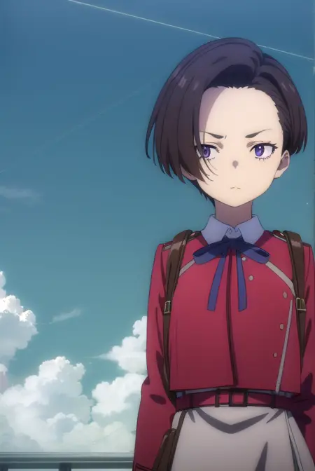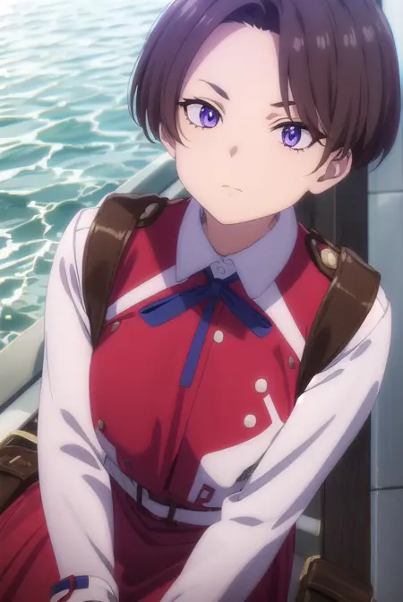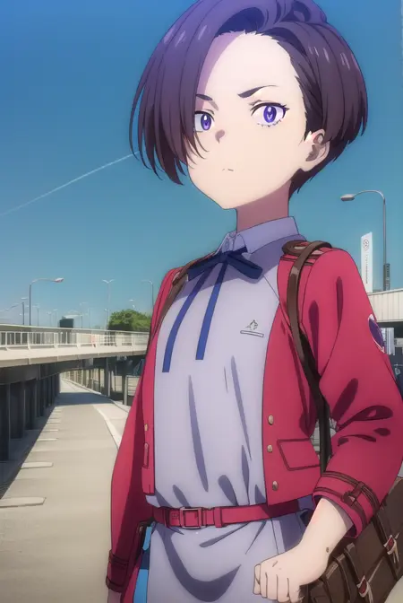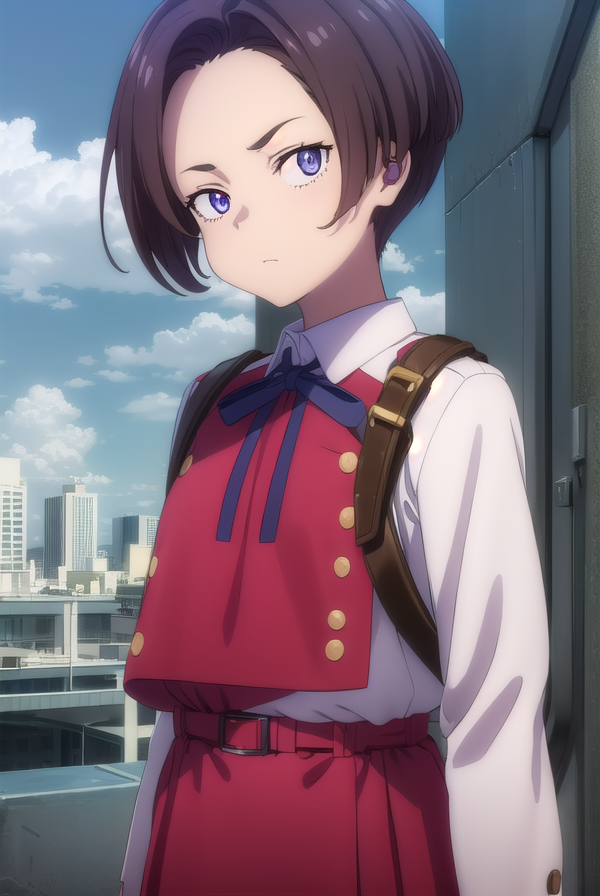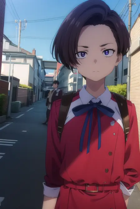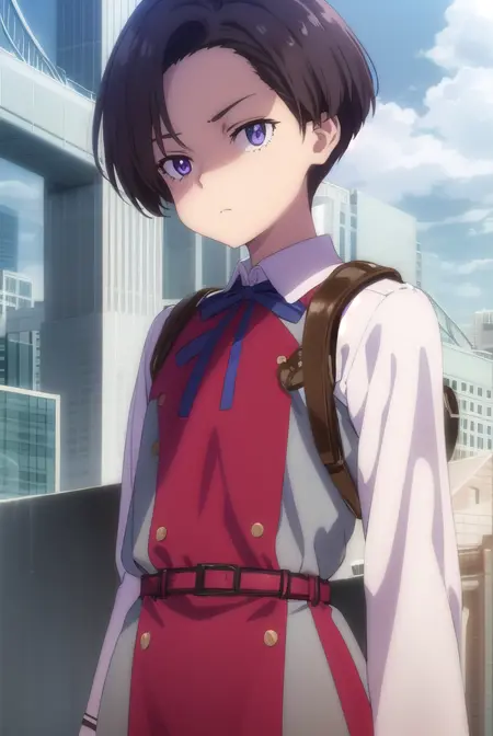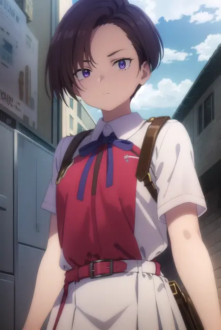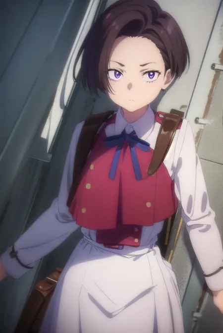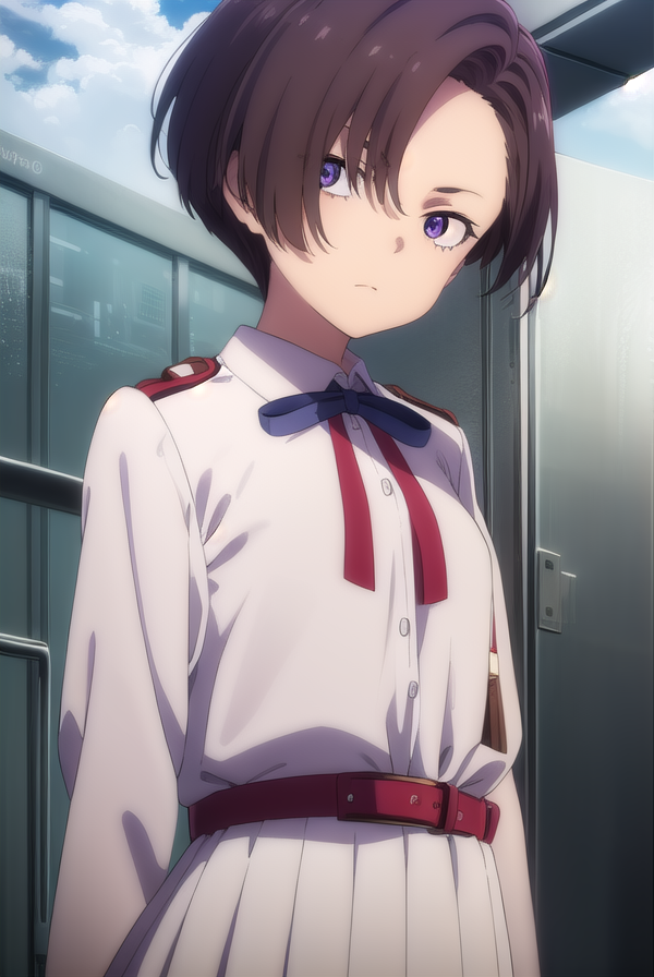 fuki harukawa、短い髪、額、茶色の髪、(紫の目:1.1),