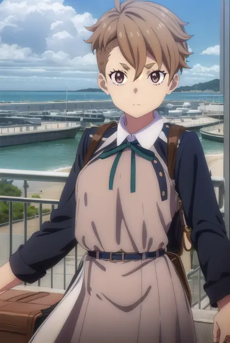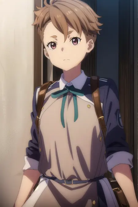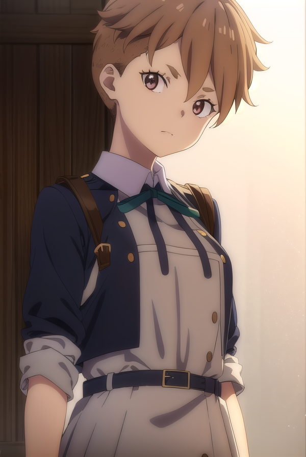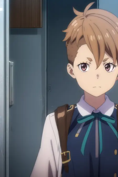 sakura otome, 단발, 앞머리, 갈색 머리, (갈색 눈:1.5),