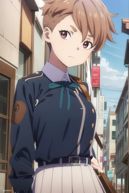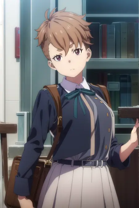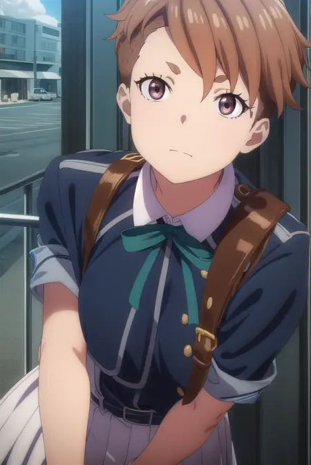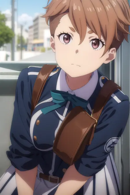 sakura otome、ショートヘア、前髪、茶色の髪、(茶色の目:1.5)