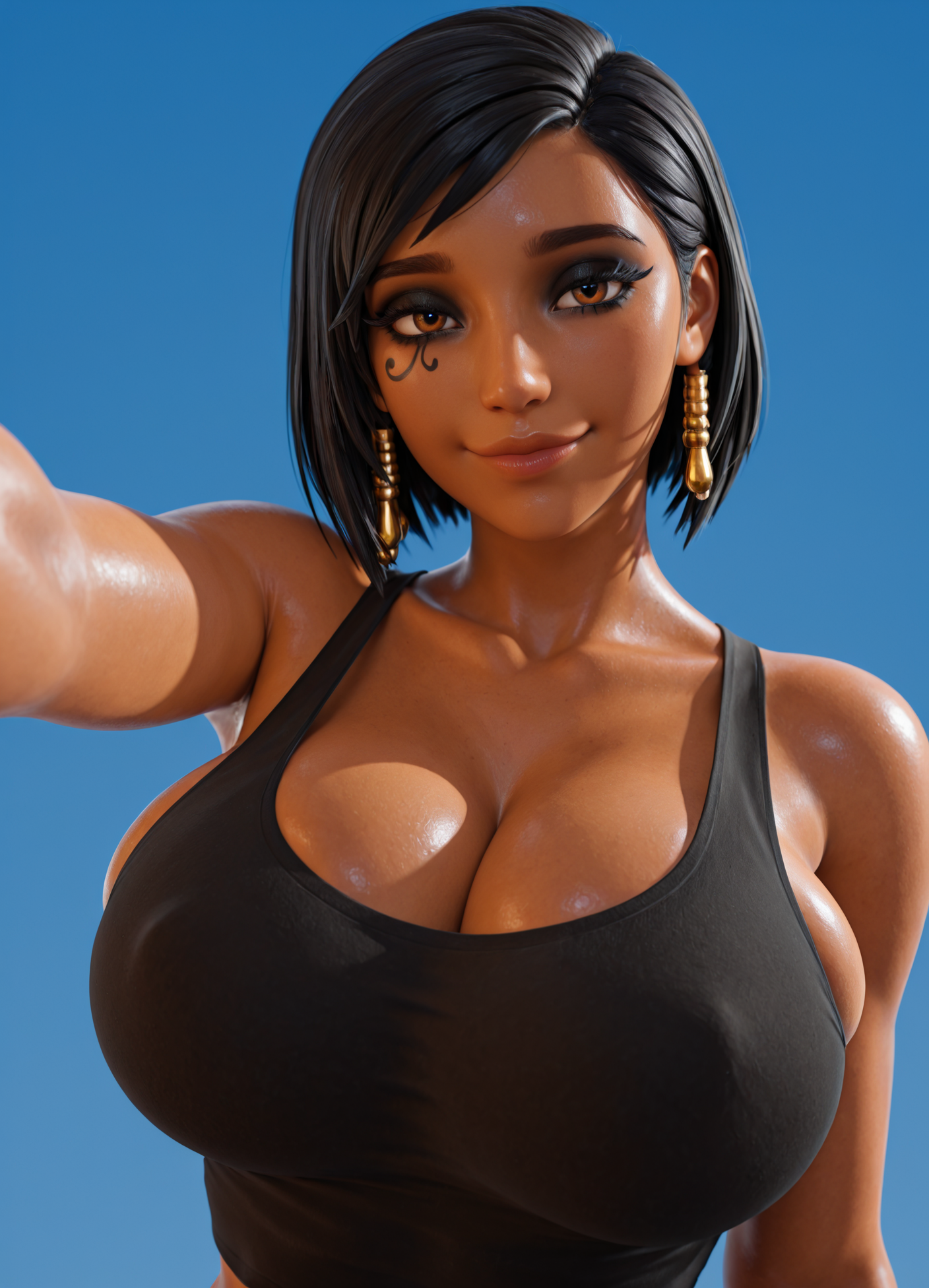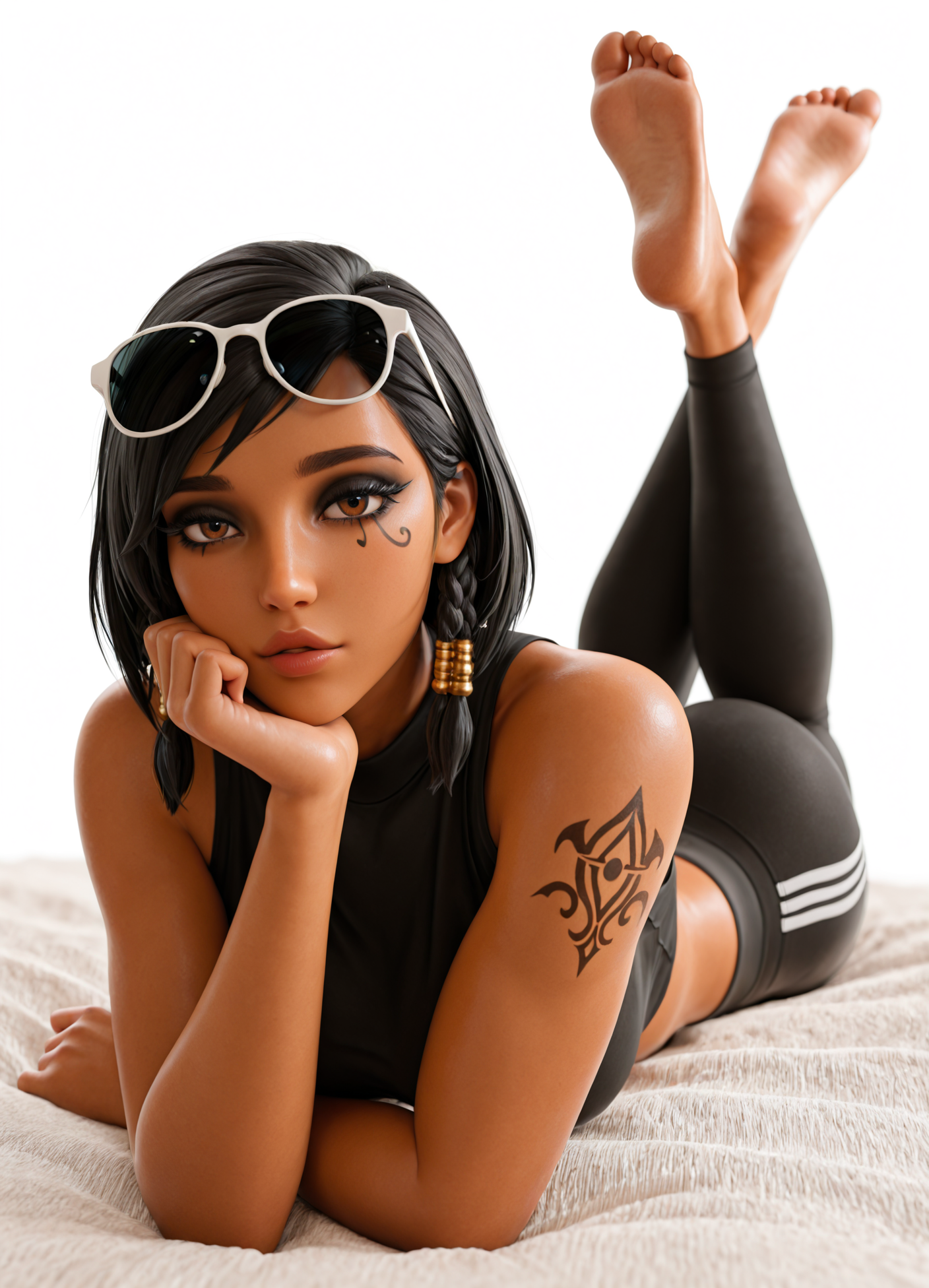 pharahOW, 검은 피부, 단일 얼굴 문신, 검은 머리, 검은 피부를 가진 여자, 갈색 눈, 머리 튜브, 스윕 앞머리, 얼굴 마크, 측면 땋은 머리, 메이크업