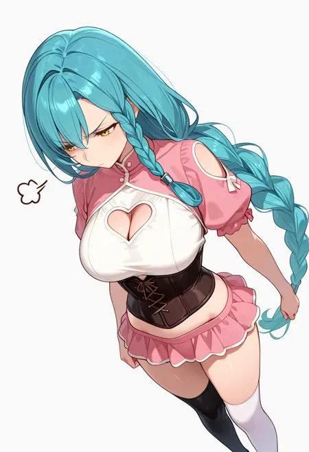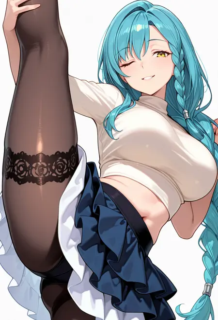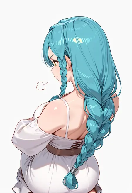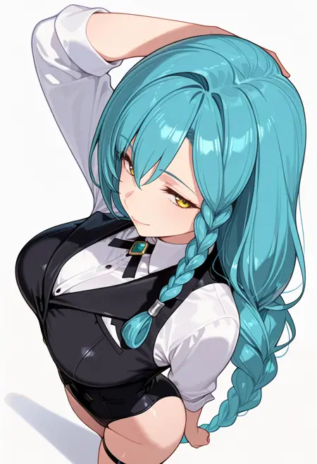 marblehart_cnr, 1girl,long hair, single braid, very long hair, yellow eyes, braided ponytail,aqua hair, shiny hair,mature female,
