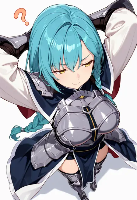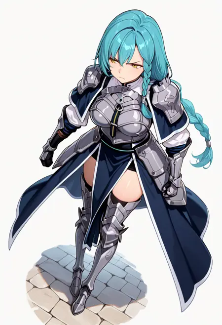 breastplate, capelet, pauldrons,white shirt, long sleeves, armored dress,thighhighs,gauntlets,waist cape, armored boots,