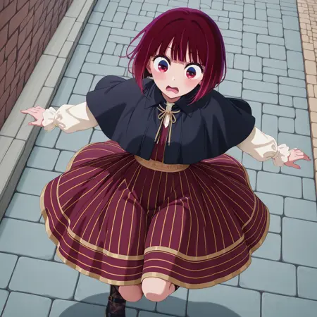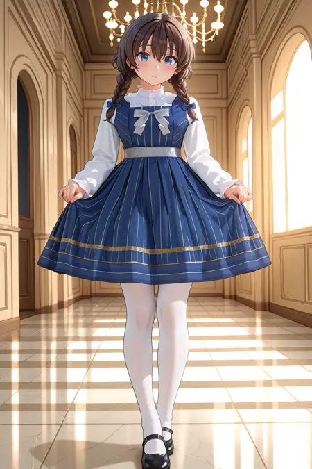 このLoRAは、ストライプ柄クラシカル・ケープレットコーデを再現します。