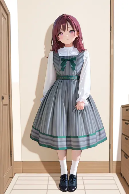 The colors of the dress, shirt, sash, trim, and capelet are fully customizable, allowing a wide range of moods—from calm and classical to magical academy aesthetics.