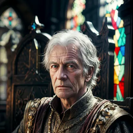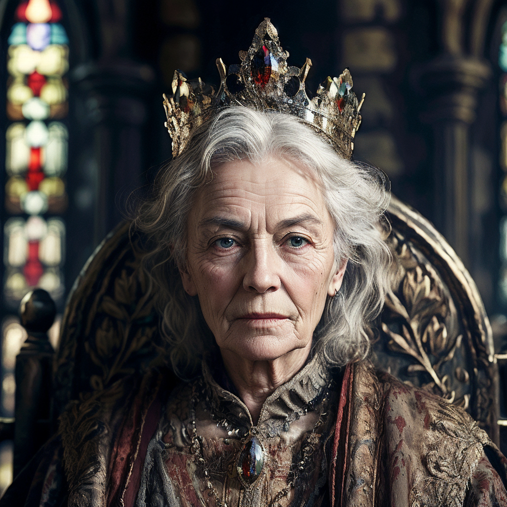 1boy, 1girl, 2boys, 2girls, 3girls, 4girls, 6+boys, armlet, armor, backlighting, bald, beard, black hair, blonde hair, blue eyes, blurry, blurry background, bracelet, braid, breasts, brown eyes, brown hair, candle, cape, chainmail, chair, cleavage, closed mouth, collarbone, crowd, crown, curly hair, dark skin, dark-skinned female, depth of field, dress, earrings, facial hair, freckles, fur trim, gem, green eyes, grin, hair slicked back, hat, holding, indoors, jacket, jewelry, large breasts, lips, long hair, long sleeves, looking at viewer, looking up, male focus, manly, medium breasts, mole, multiple boys, multiple girls, mustache, necklace, old, old man, old woman, parted lips, pauldrons, realistic, red cape, red dress, ring, robe, rpgroyalty, scar, scar across eye, scar on face, shirt, short hair, shoulder armor, sitting, smile, solo, solo focus, statue, sunlight, sword, teeth, throne, tiara, upper body, vest, wavy hair, weapon, white hair, wrinkled skin,