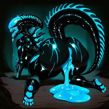 Xenomorph女王是一个 monstrous而丰满的外星生物,专为在黑暗科幻背景下体现力量、统治与极致性感而设计。她光滑的黑色生物机械外骨骼覆盖着极致曲线的身躯,拥有巨大的自然乳房与盔甲融为一体,宽大的臀部、粗壮的大腿以及突出丰腴的臀部,凸显出她威严而迷人的体态。