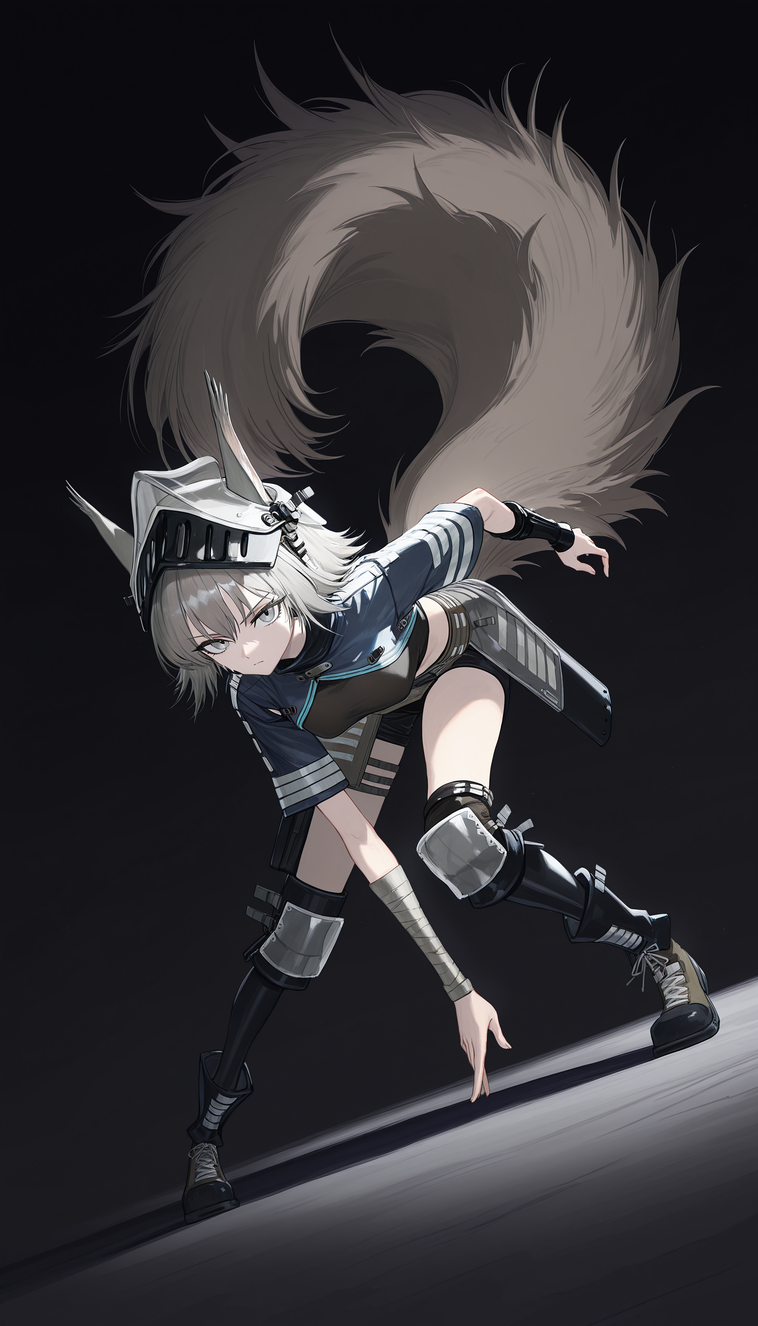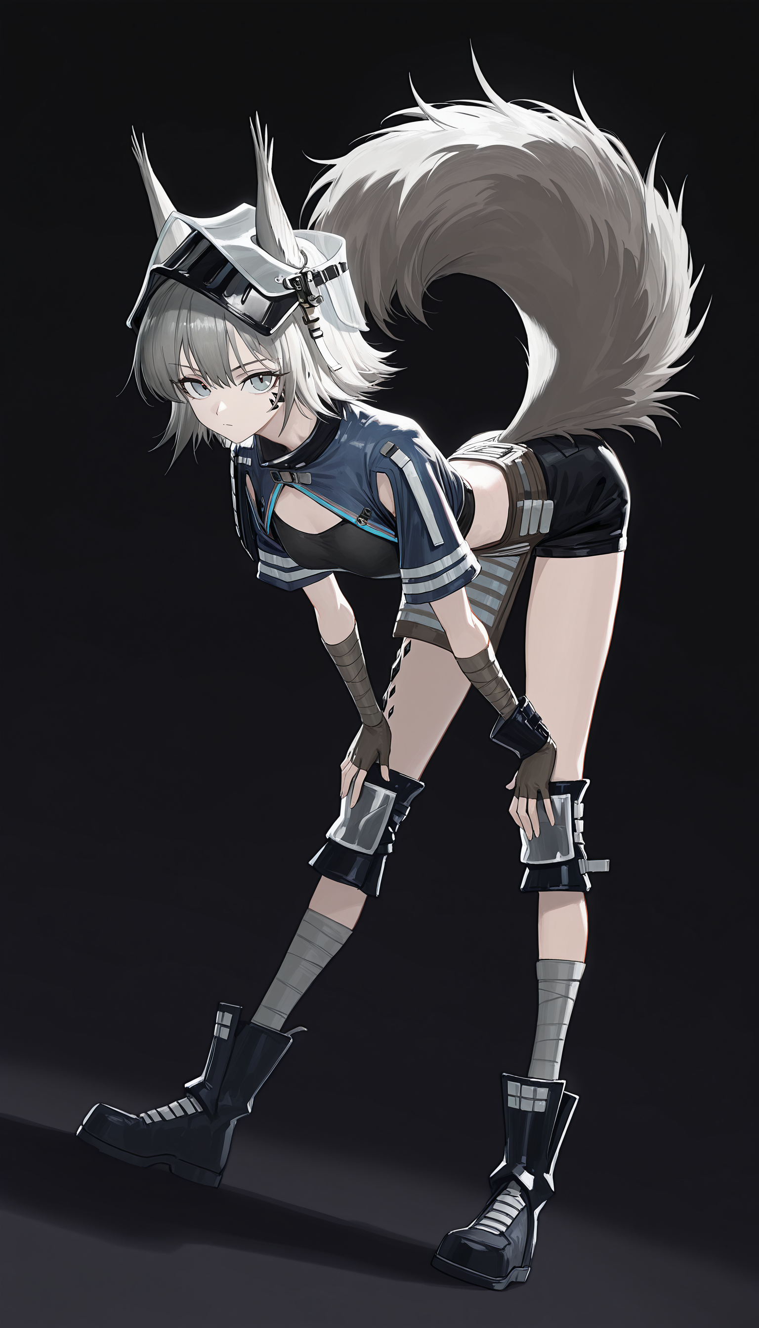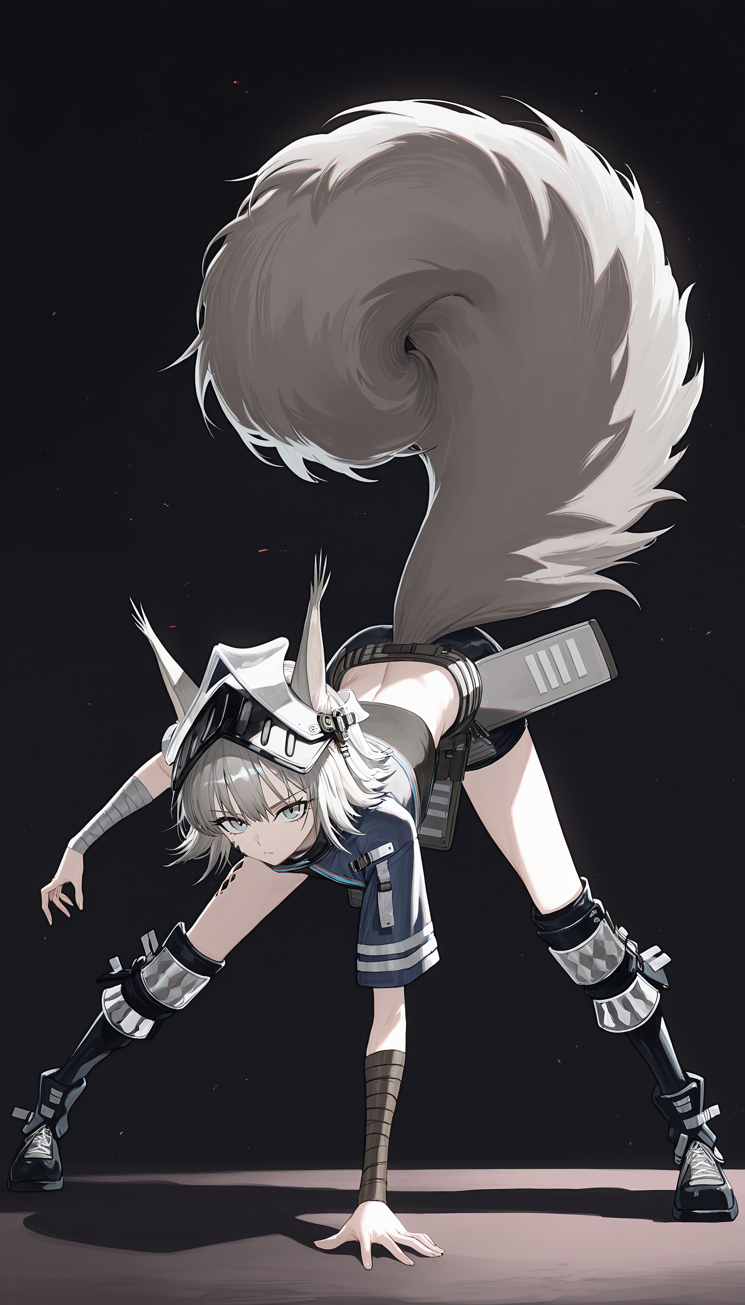 회색 눈, 회색 머리, 다람쥐 귀, 다람쥐 꼬리, 큰 꼬리, 단발,