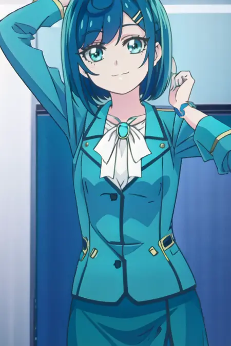 aqua_jacket,white_shirt,blue_pencil_skirt, pantyhose