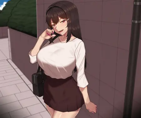 yumi, pink eyes, brown hair, long hair, straight hair,