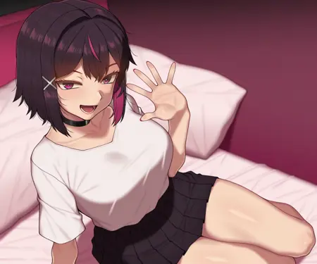 sora, choker, purple eyes, x hair ornament, multicolored hair,