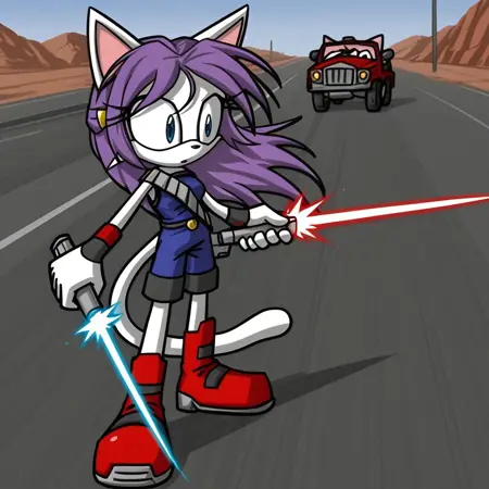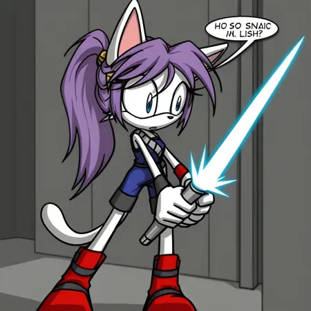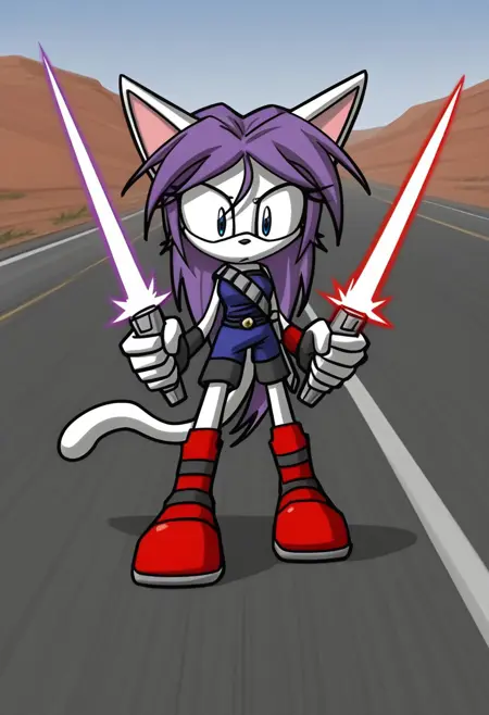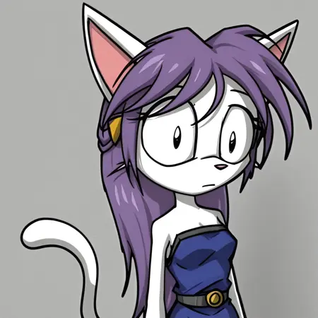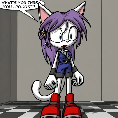 wldfr_en, 1girl, solo, 보라색 머리, 동물 귀, 긴 머리, 파란 눈, 퓨리, 고양이 귀, 꼬리, 반바지, 퓨리 페미닌, 고양이 꼬리, sonic_the_hedgehog,