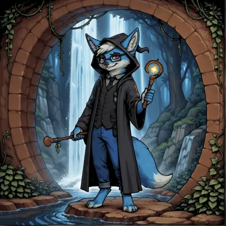 부 태그: 수컷 퓨리 펜넥, 동물 귀 털, 파란 털, 이색 털, 빨간 눈, 흰색 머리, 단발, 여우 꼬리, 지지족, 사각 안경