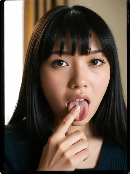 5h0wu5wh3r3, tongue out, open mouth, finger to mouth